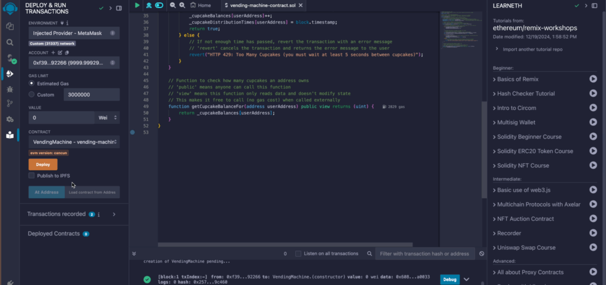- Deploy your vending machine contract to the Arbitrum Sepolia testnet